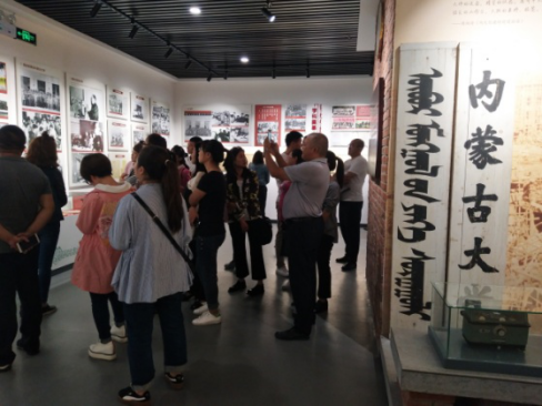 学员培训课开课不久正好遇上我校迎接内蒙古大学建校60周年校庆,学员们都被校庆的气氛所感染,于是继续教育学院利用这个有利时机利用培训教学安排的第二课堂,于9月15日组织全体学员来到南校区进行了参观考察,首先在南校区组织学员参观了校史馆,请校史馆讲解员详细的介绍了内蒙古大学60年的发展变迁。解说员讲述了建校初期学校组建经过。以及经过国家30年改革开放,内大也经过几个重要发展期,即内蒙古大学于1978年被国务院确定为全国重点大学,1997年被批准为国家“211工程”重点建设院校,2004年成为内蒙古自治区人民政府和国家教育部共建高校,2012年入选国家“中西部高校提升综合实力计划”高校,2016年被国务院确定为中西部“一省一校”高水平大学建设支持高校、被内蒙古自治区人民政府确定为“双一流”建设首选支持高校。总之经过60多年建设发展取得了世人著目的成绩。参观完校史馆后,学员又参观了南校区图书馆。图书馆办公室包金亮主任带领学员参观并给学员讲解了图书馆现代化管理和智能化的图书借阅流程。对校史馆、图书馆参观后笔者与几位班委进行了交流,交流中几位班委谈到“我们通过对校史馆和图书馆的浏览,一幕幕场景都见证了内蒙古大学的成长历史。1957年,内蒙古大学作为新中国在少数民族地区创办的首所综合大学,在党中央国务院亲切关怀下,由北京大学等十六所著名高校倾力支援,一举到位高起点创建。看到六十年来,内蒙古大学先后成为全国重点大学、“211工程”重点建设大学、自治区人民政府和国家教育部共建大学、国家中西部“一省一校”重点建设大学、自治区“双一流”建设首选支持大学,特别是经过60年,培养了大批各民族高素质人才,为地区发展进步、民族团结振兴、国家繁荣昌盛做出了突出贡献,走出了一条在边疆少数民族地区建设高水平综合大学的发展道路,谱写了民族地区高等教育的壮美篇章,作为内蒙古大学的毕业生,我们为母校感到骄傲、感到自豪。同时也感恩母校!我们对内蒙古大学的未来充满了自信,早日进入国家“双一流”建设大学。”