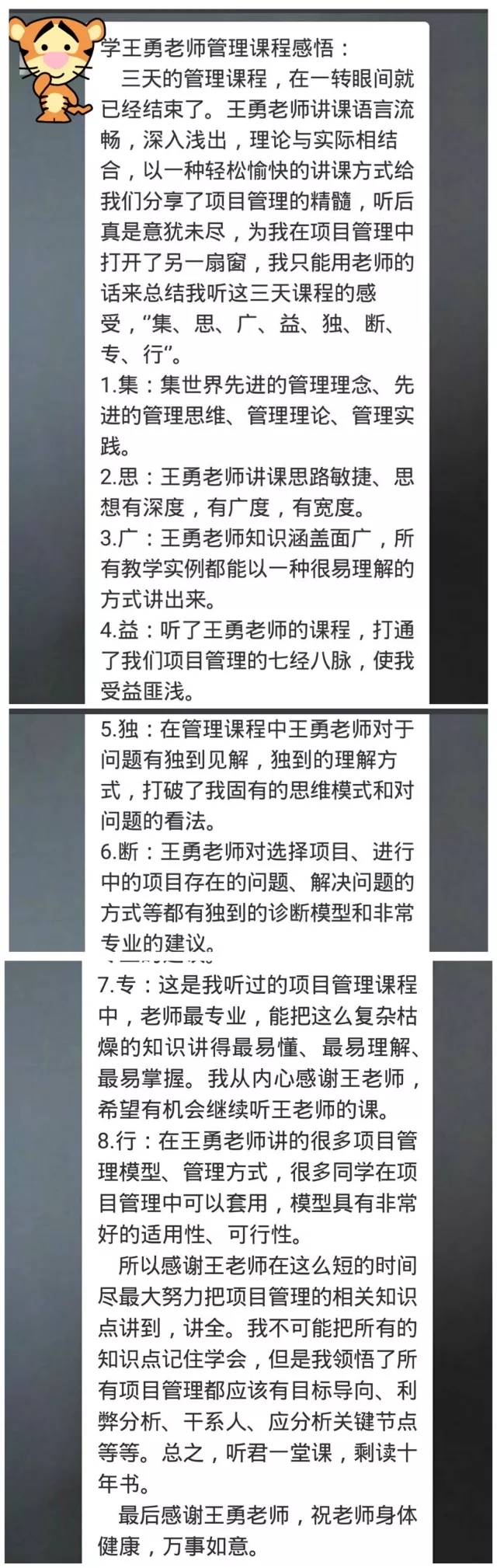课程开始,王勇老师讲到:“在当今社会中,一切都是项目,一切也将成为项目。”因此,如何在有限的资源约束下,运用科学的方法,对项目涉及的全部工作进行有效地管理,这才是对“项目管理”这堂课程最准确、全面、直观的定义。