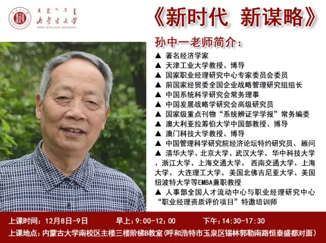 课程预告 | 孙中一老师《新时代 新谋略》(12.8-12.9)